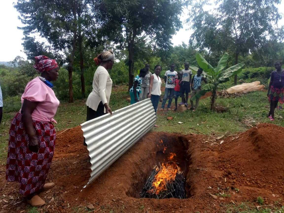 While both of these methods offer a solution to farmers for convert crop waste into biochar, we found we needed to bring the technology down just a bit more. We discovered for some farmers the materials to build either type of oven was not available to them. So we designed the Biochar Trench method, which is widely used by our partners in Africa.