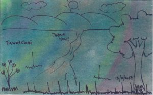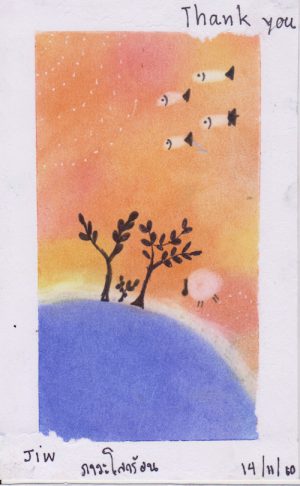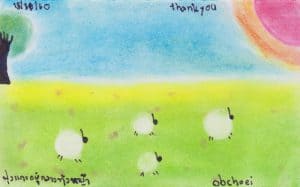 Dawn, a volunteer at Warm Heart from Singapore, introduced the children to Nagomi Art, a form of Japanese art healing founded in Japan, using pastels and fingers to create a gentle, transparent, warm and heart-touching art through simple yet unique ways of painting techniques.